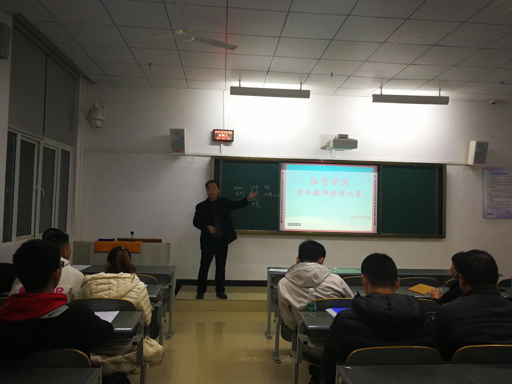 为进一步提高青年教师教学能力和水平,规范青年教师教学行为,促进教学质量进一步提高。按照学校统一要求,2019年3月6-7日,体育学院开展了2019度青年教师讲课比赛活动。本次讲课比赛评委由基础医学院党总支龙艺、体育学院党总支书记汪伟、院长汪爱平、副院长黄涛等15位专家和17名学生代表组成,比赛由学院办公室主任唐溢主持。