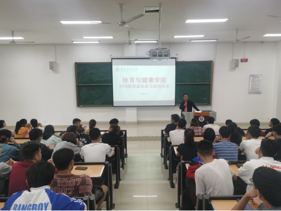 接着,由学院党委书记汪爱平教授介绍了社体和运康两个专业的实习工作计划。在实习期间要服从带教教师和实习单位的安排,自觉遵守实习单位的各项规章制度。每天的实习结束后要主动征求各方面意见,了解实习效果,制订改进措施,写好实习小结。最后,他还希望实习的同学要充分展示出自己的才华,把自己影响力和才能发挥出来,通过实习总结经验,吸取教训,真正在实习和实践中得到锻炼,并强调要注意自身安全问题,特别是实习中的安全是排在第一位。预祝18级全体学生实习圆满成功。