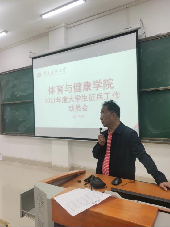 5月17日下午,我院2018级毕业生征兵工作推进会在20阶梯教室举行,学院党委书记汪爱平、团委副书记肖伟及2018级毕业生参加会议。会议由肖伟老师主持。